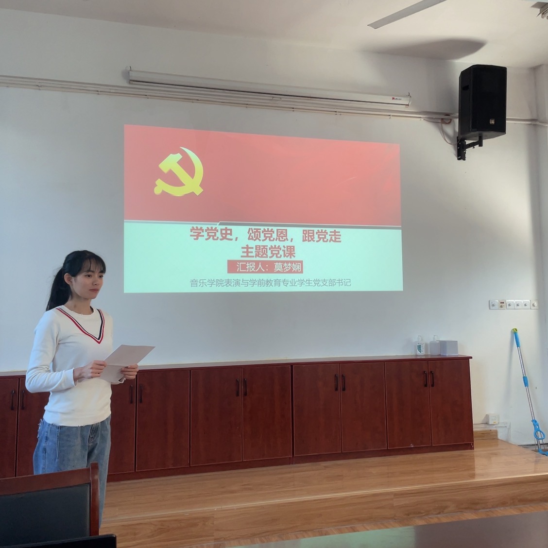 为深化党史学习教育,进一步增强高校大学生党员的使命感和责任感,9月28日,表演与学前教育专业学生党支部书记莫梦娴以《学党史、颂党恩、跟党走》为主题,给支部全体党员上了一堂微党课。