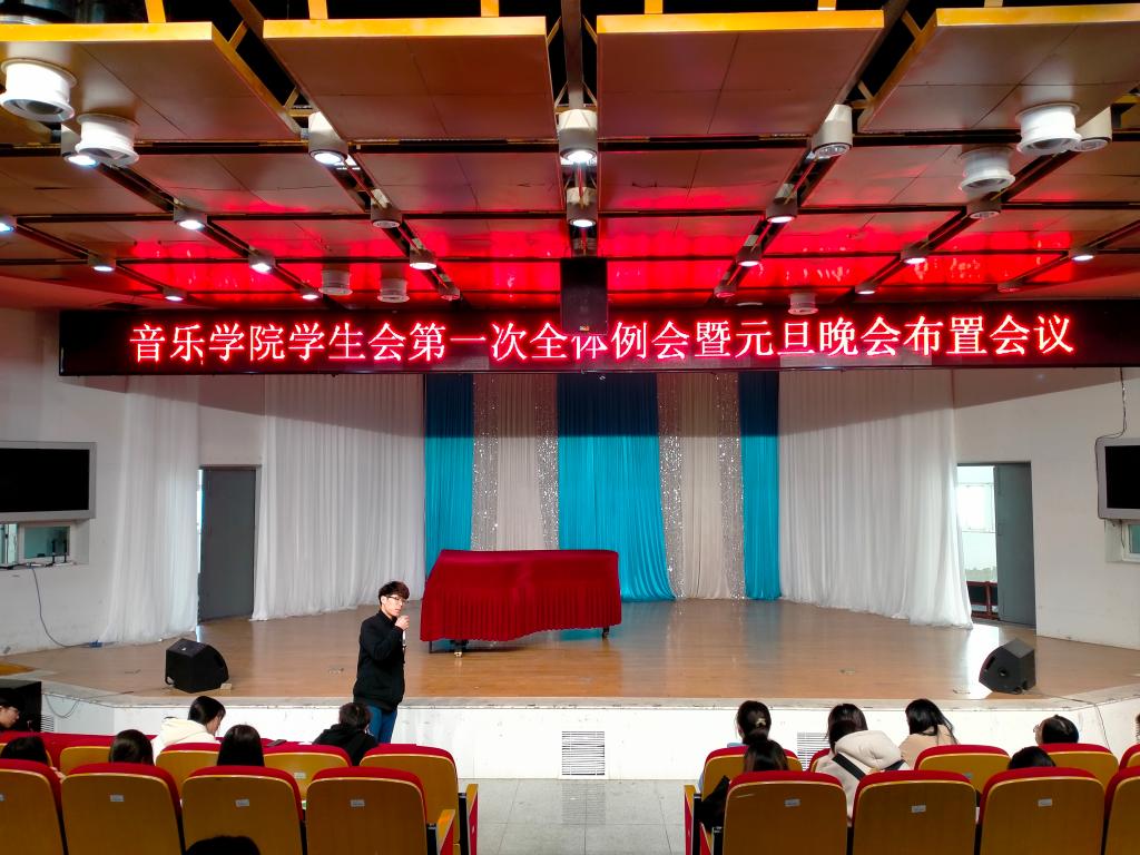 11月12日,音乐学院学生会在音乐厅召开了第一次全体例会暨元旦晚会布置会议。音乐学院分团委副书记莫梦娴,学生会主席邹多欢、谢堃,学生会全体成员以及20、21级各班班长、团支书参加了此次会议,本次会议由邹多欢主持。