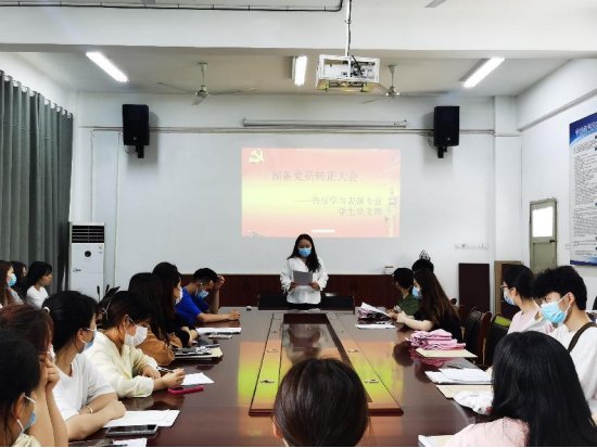 5月24日,音乐学与表演专业学生党支部在音乐学院会议室召开预备党员转正大会,会议由支部书记莫梦娴主持,大会讨论了王荣、邓少琴、龙泽珺、王嘉瑶、向秋风、丁龙玲的转正事宜。