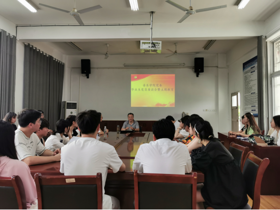 为进一步加强毕业生党员教育,2022年6月22日,音乐学院党委在会议室召开毕业生党员座谈会暨主题教育活动。党委副书记(临时负责)徐强,音乐学与表演专业学生党支部书记莫梦娴,学前教育专业学生党支部书记李伟帅,毕业班辅导员以及全体毕业生党员参加了会议。