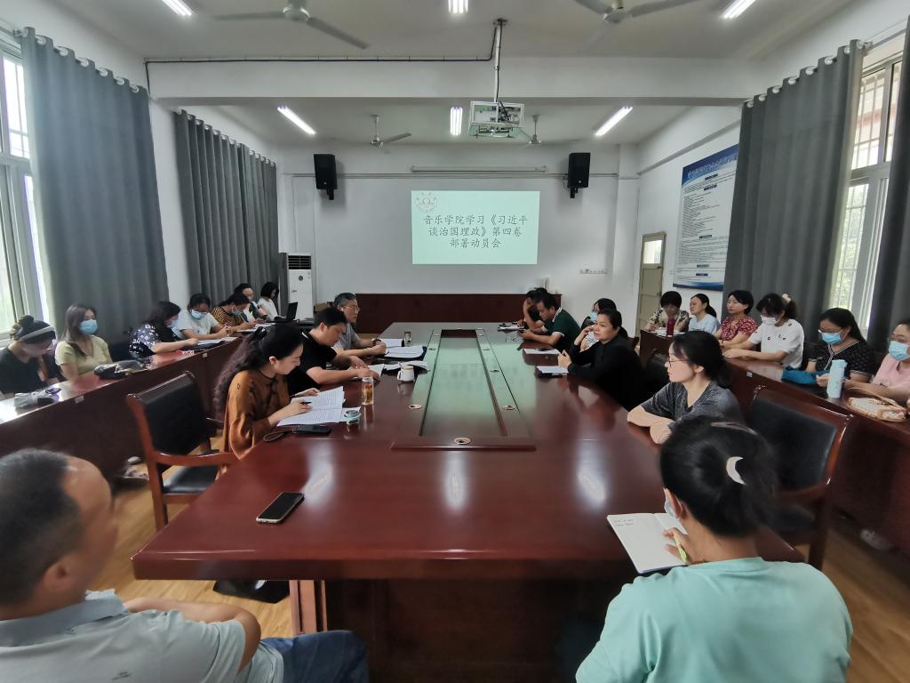 8月25日,音乐学院党委在会议室召开了学习《习近平谈治国理政》第四卷部署动员会。党委副书记、院长王善虎,党委副书记(临时负责)徐强,党委副书记、纪委书记李小娜,副院长钦媛以及全体教职工参加了会议,本次会议由徐强主持。