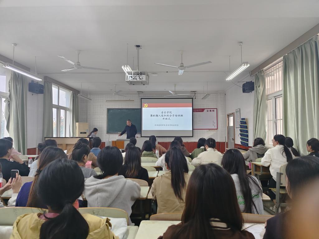 2023年10月23日,音乐学院第41期入党积极分子线下培训班开班式如期举行。开班式由党委书记徐强主持,党委副书记,纪委书记李小娜,学生支部书记莫梦娴、吴迪,专职组织员刘文波出席会议。本期培训班共遴选出48名入党积极分子。