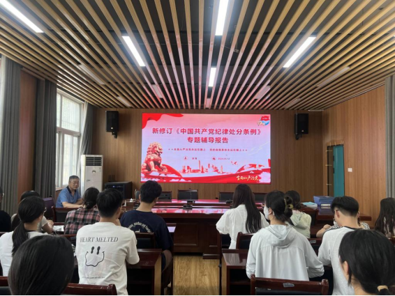 为进一步强化毕业生党员对党纪知识的理解和掌握,真正做到学纪、知纪、明纪、守纪,6月25日,音乐学院党委书记徐强为毕业生讲授离校前的“最后一堂党课”。徐强以新修订的《中国共产党纪律处分条例》为主题为毕业生党员做了专题报告,从深刻认识修订《条例》的重要意义,准确把握《条例》修订的主旨要义,抓好《条例》的贯彻执行,以严明的纪律推进党的自我革命等三个方面引导毕业生党员学深学透,不断增强自我净化、自我完善、自我革新、自我提高能力,增强“四个意识”、坚定“四个自信”、做到“两个维护”。