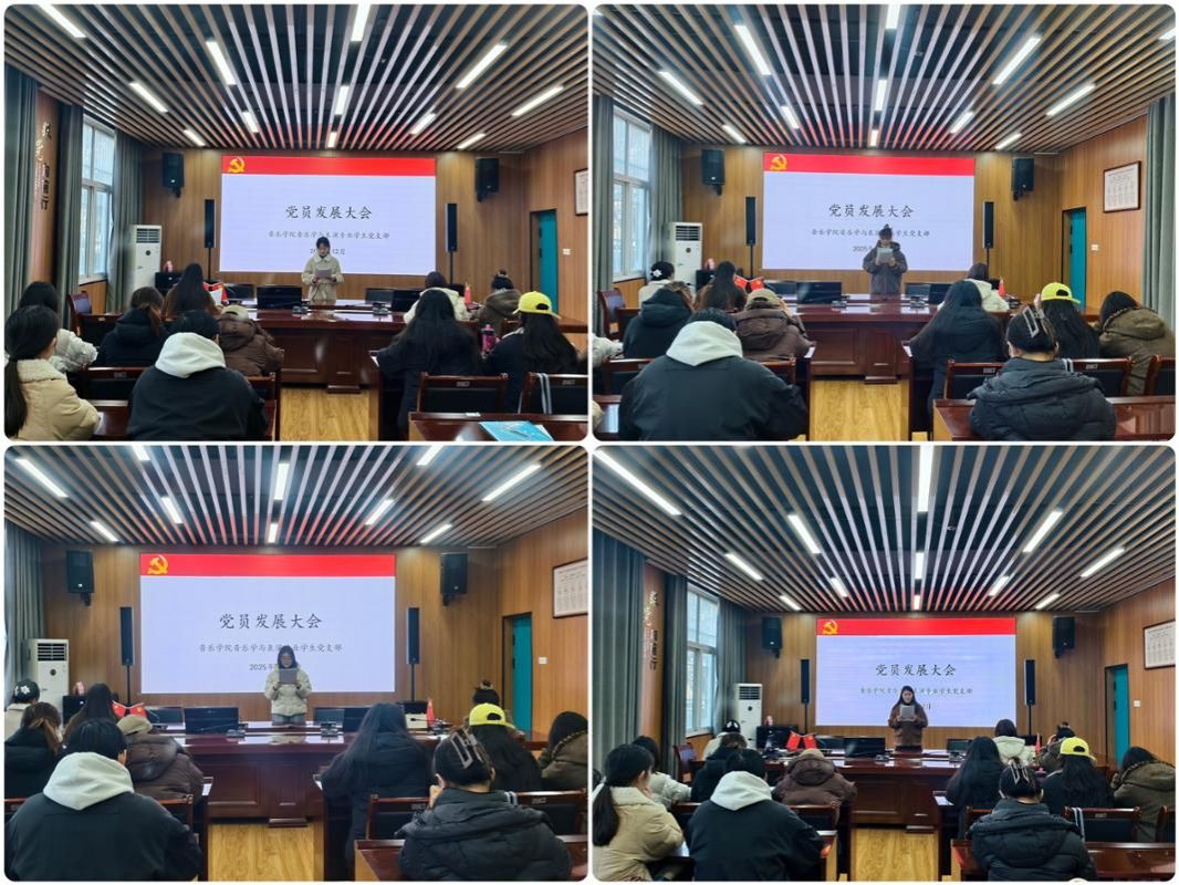 2025年12月19日,音乐学与表演专业学生党支部在音乐学院会议室召开党员发展大会。