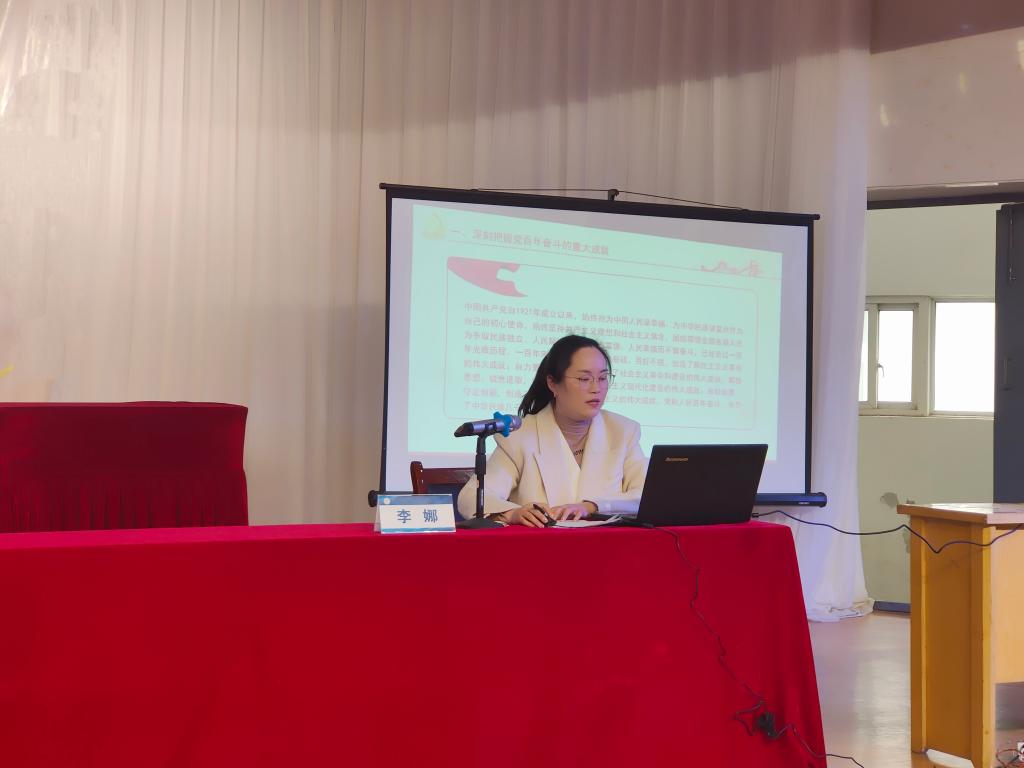 首先,宿州学院党委学生工作部部长李月云讲话,她希望通过此次专题宣讲能够促进青年大学生深入理解党的十九届六中全会精神,要善于从伟大的建党精神从党的百年奋斗历程中体悟“幸福都是奋斗出来的”这一精神血统,筑牢信仰之基、补足精神之钙,做勇立潮头的新时代弄潮儿。