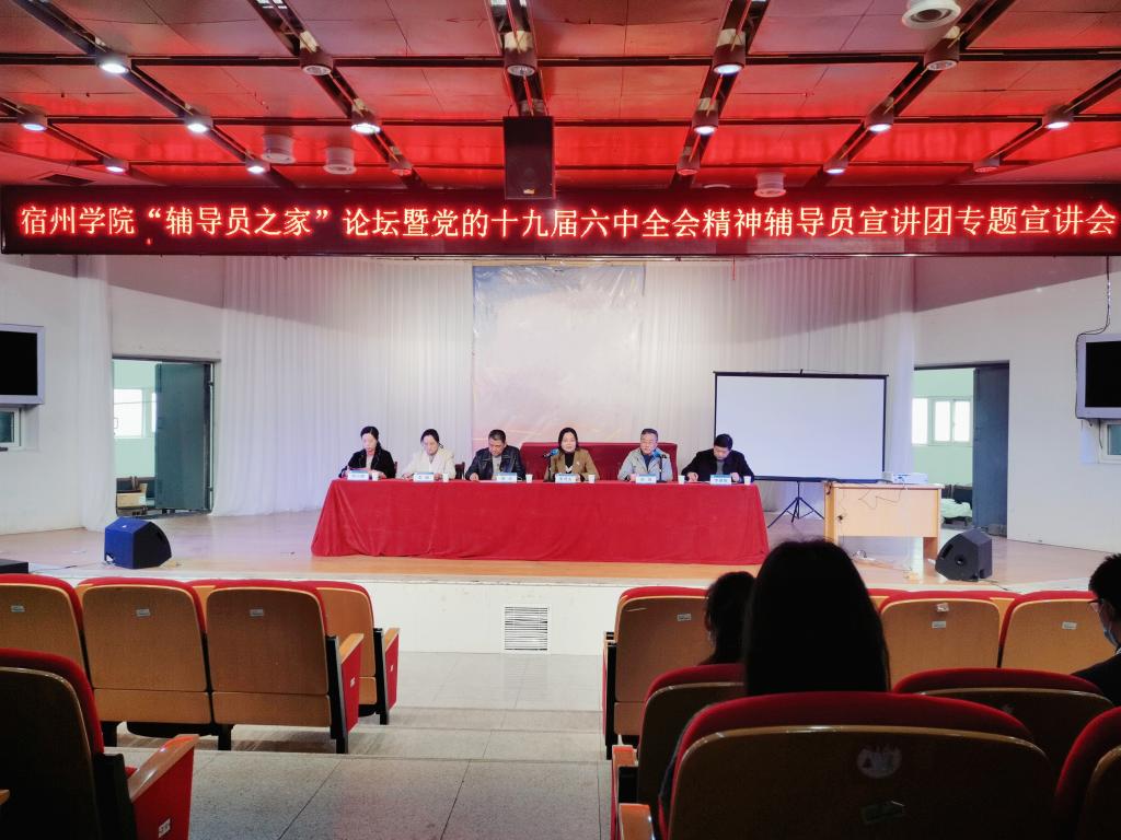 为全面深入学习宣传贯彻党的十九届六中全会精神,不断深化拓展党史学习教育,落实“立德树人”根本任务,推进“三全育人”试点改革高校建设。3月16日,在音乐厅开展宿州学院“辅导员之家”论坛暨党的十九届六中全会精神辅导员宣讲团专题宣讲会。宣讲会由党委学生工作部主办,音乐学院与环境与测绘工程学院共同承办。宿州学院党委学生工作部部长李月云,音乐学院党委副书记(临时负责)徐强,环境与测绘工程学院党委副书记(临时负责)胡冰,音乐学院党委副书记、纪委书记李小娜,环境与测绘工程学院党委副书记、纪委书记李建新,生物与食品工程学院党委副书记、纪委书记李娜以及辅导员代表、部分学生干部代表参加了此次论坛。