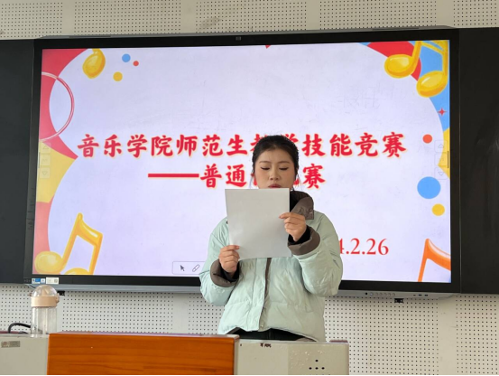 为全面贯彻落实全国教育大会精神,强化师范类学生教学基本素质和基本能力培养,培养师范生专业素养,展现当代师范生教学风采,2月26日,音乐学院在艺术楼A204举办音乐学院师范生教学技能系列活动——普通话比赛。