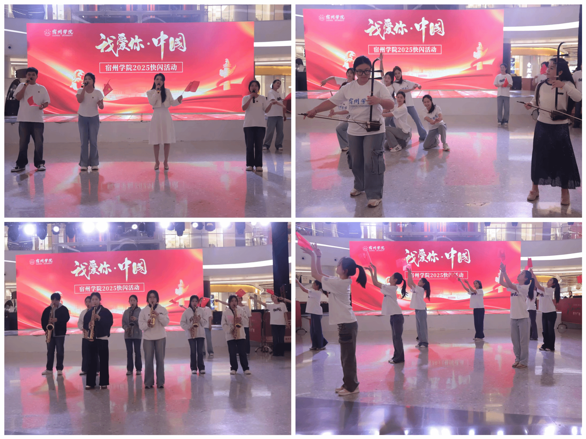 3月23日,“我爱你·中国”宿州学院2025快闪活动在苏宁广场上演,宿州学院音乐学院的党员师生们以“音乐+舞蹈”的形式,传递爱国情怀,用青春激情奏响爱国最强音,组织部、学工部主要负责同志和音乐学院各党支部书记观摩了本次活动。