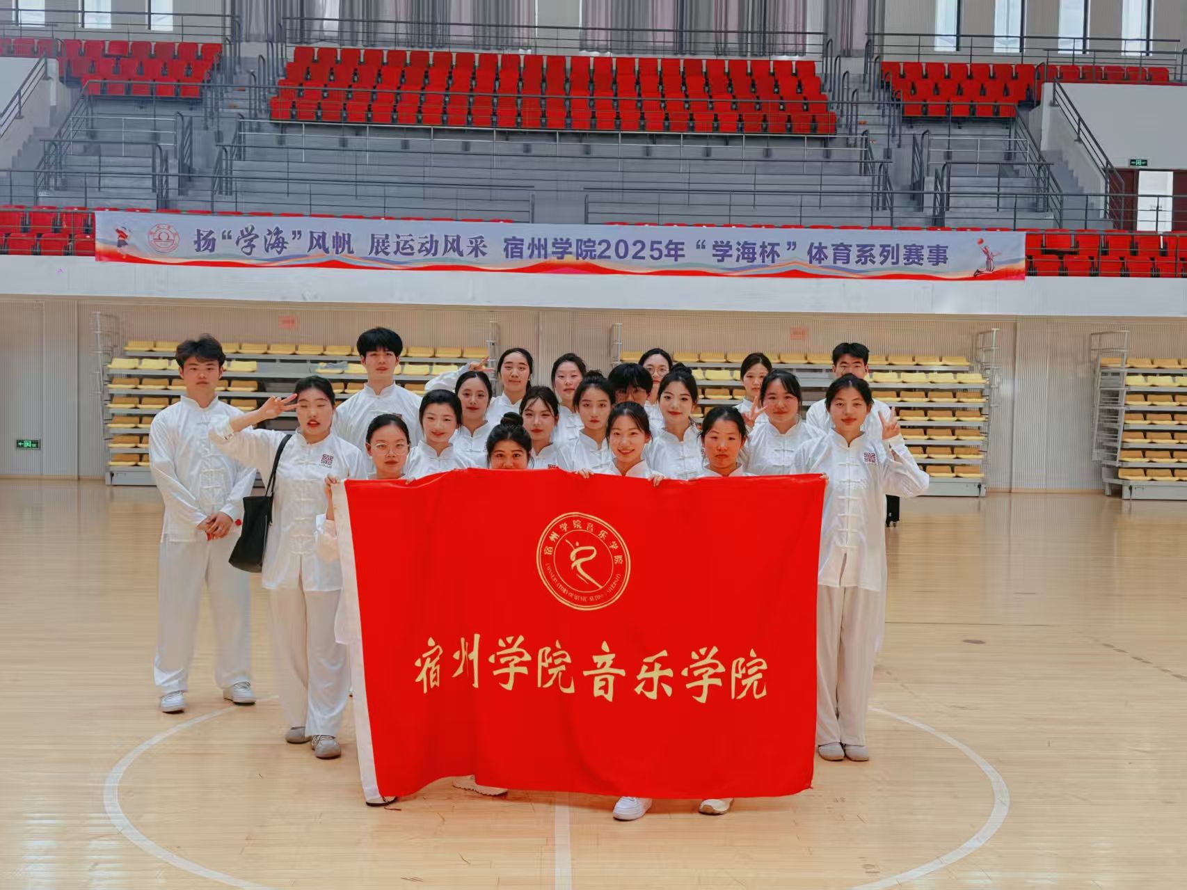 为弘扬中华优秀传统文化,丰富学生课余生活,增强学生身体素质,4月16日,宿州学院在篮球馆举办宿州学院第一届“学海杯”健身气功比赛,音乐学院凭借出色的表现,荣获团体第一名的好成绩。