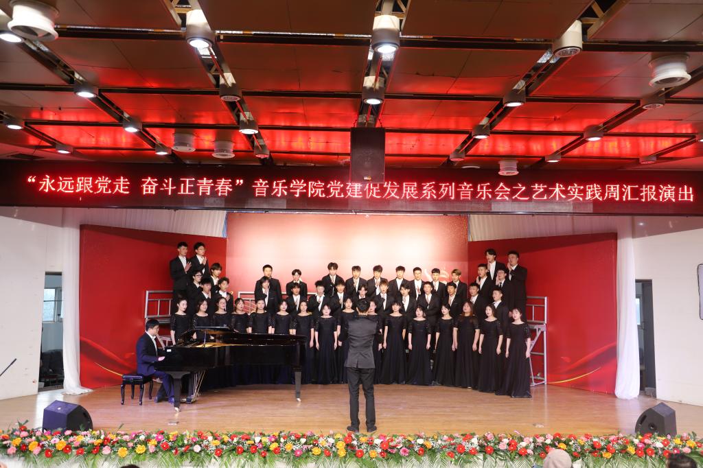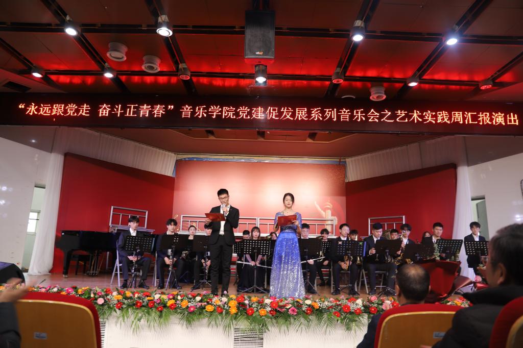 12月10日下午3点,19级音乐学专业学生在音乐厅开展了“永远跟党走,奋斗正青春”音乐学院党建促发展系列音乐会之艺术实践周汇报演出,演出由音乐学院实习实训中心与音乐学教研室承办,19级音乐学全体学生参加演出。