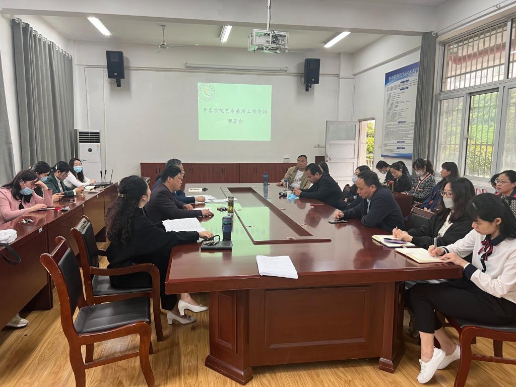 为迎接党的二十大胜利召开做好理想信念教育,丰富校园文化氛围,切实凝聚师生力量、共促良好教风、学风,推进学校“三全育人”综合改革试点高校建设工作,5月11号下午,音乐学院召开艺术展演实践教育系列活动安排部署会,全体教职工参加了会议。