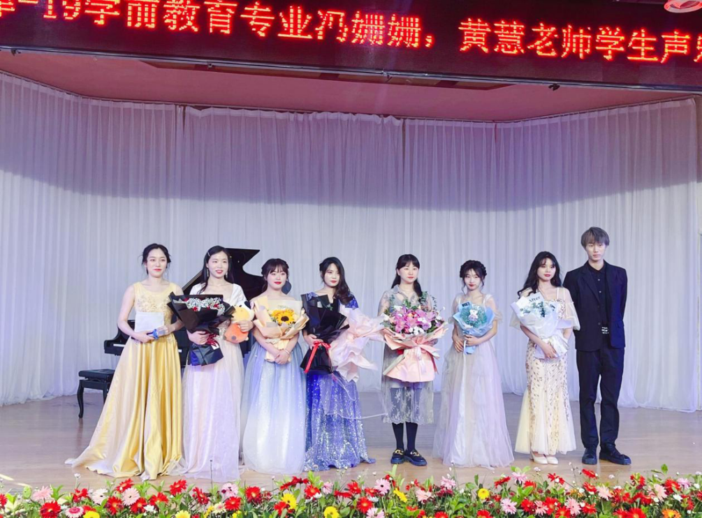 2022年5月20日,“以艺抗疫 声韵聚力”-2019级学前教育专业艺术展演冯姗姗老师和黄慧老师学生声乐音乐会在音乐学院音乐厅如期举行,音乐学院学前教育专业全体学生到场观摩学习。
