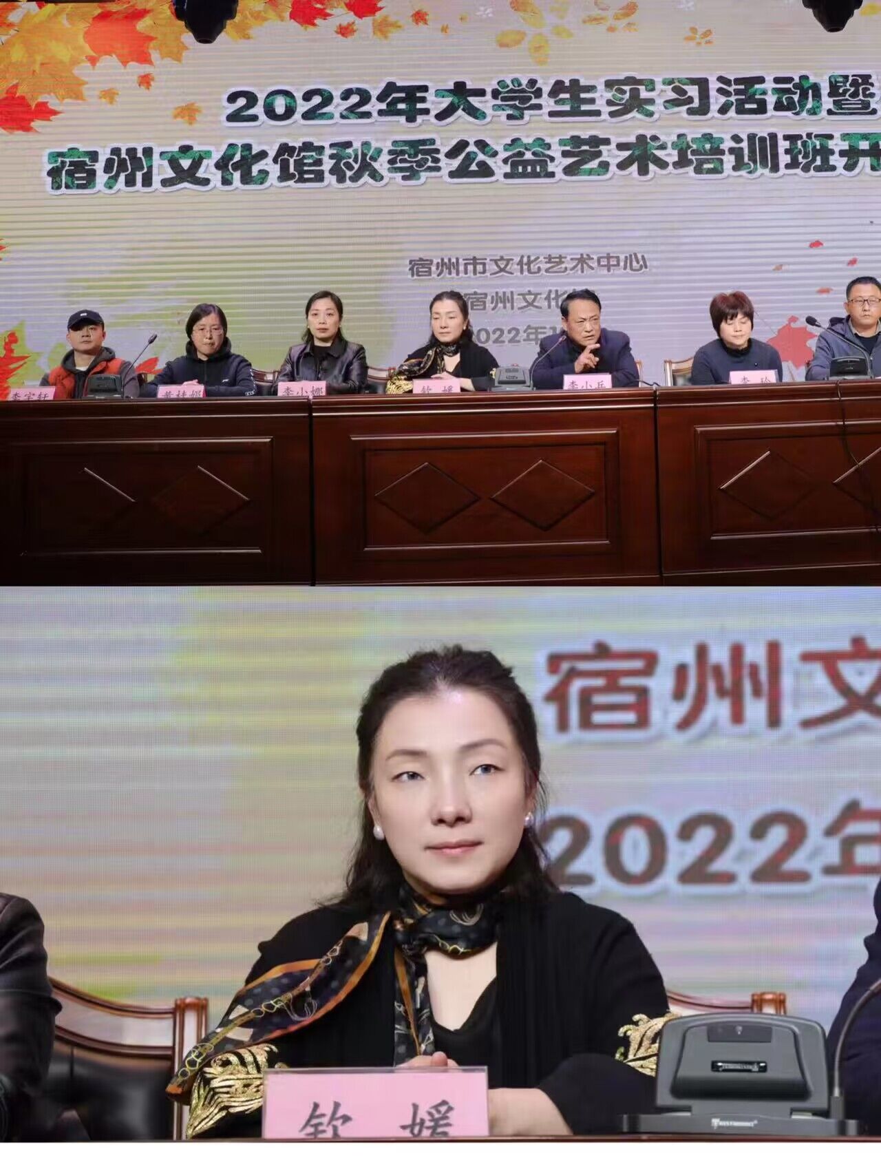 10月31日上午,宿州文化馆在小剧场举行2022年大学生实习活动暨宿州文化馆秋季公益艺术培训班开班仪式。音乐学院副院长钦媛、党委副书记李小娜、音乐学教研室主任黄桂娟及实习生们参加了开班仪式。