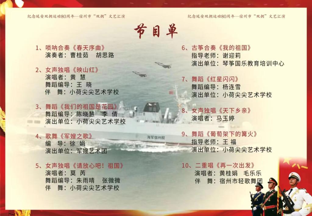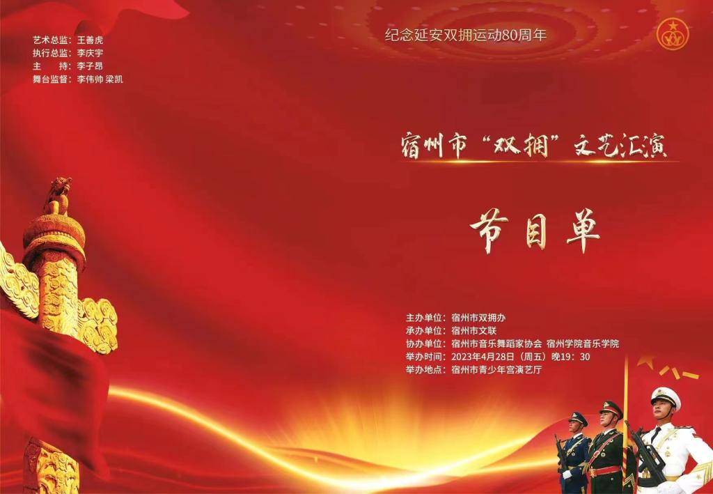 4月28日晚,宿州市纪念延安双拥运动80周年暨“双拥”文艺汇演在青少年宫演艺厅隆重上演。此次活动由宿州市双拥办主办、宿州市文联承办、宿州市音乐舞蹈家协会以及宿州学院音院学院协办,宿州市舞蹈家协会主席、音乐学院院长王善虎全程参与本次活动的策划组织与演出工作,同时音乐学院的老师上演了精彩的节目。