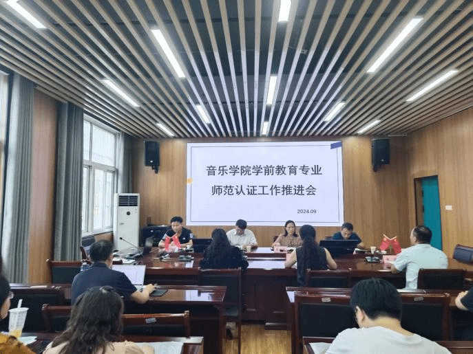 为进一步推进师范认证工作,提高师范专业人才培养质量,音乐学院于2024年9月4日召开了学前教育专业师范认证推进会。校党委常委、副校长王红艳、教务处处长、环境与测绘工程学院院长、发展规划处及教务处相关科室科长、音乐学院处级以上干部以及学前教育专业全体教师参加了此次会议。