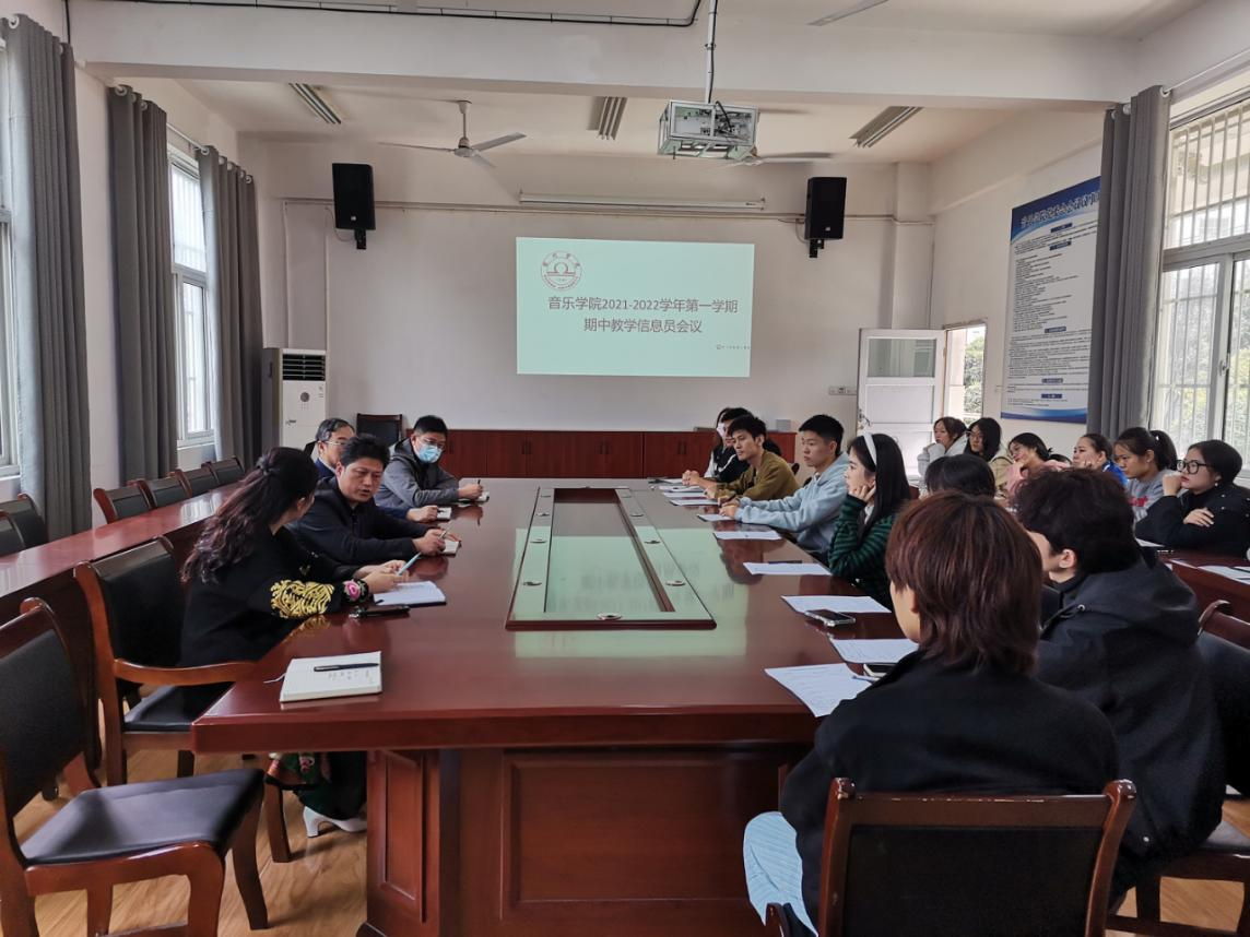 为加强教学管理,提高教学质量提供信息和第一手材料,按照学校、学院相关文件精神及工作计划安排,音乐学院于2021年11月2日在会议室召开了音乐学院全体学生教学信息员会议。院党委副书记、院长王善虎,院党委副书记(临时负责)徐强,副院长钦媛,教学秘书及教学信息员负责老师参加了会议,会议由王善虎院长主持。
