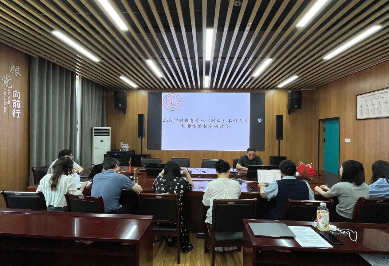 为深入贯彻落实新时代学前教育改革发展要求,构建适应行业需求的高质量人才培养体系,5月21日下午,学前教育教研室在会议室召开学前教育专业(对口)2025版本科人才培养方案制定研讨会。院领导、学前教育教研室全体教师及教学管理人员参加会议,会议由陈抗副院长主持。