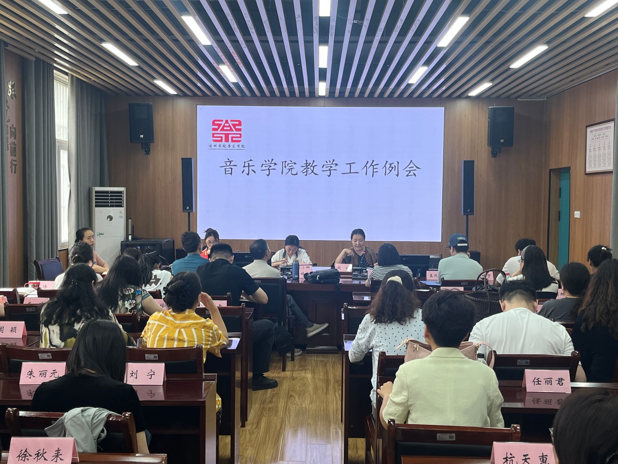 为保障学期末工作平稳有序并提前谋划下学期教学,我院于2025年6月18日召开教学工作例会。会议由音乐学院党委副书记、院长钦媛主持,学院领导及全体教师参会。