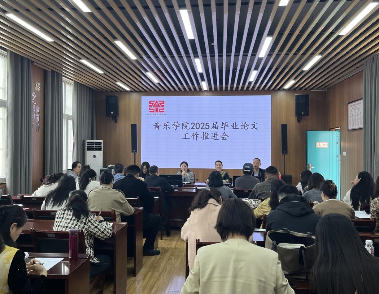 4月16日,音乐学院 2025 届毕业论文工作推进会在学院会议室召开。会议由音乐学院党委副书记、院长钦媛主持,全体毕业论文指导教师参加。