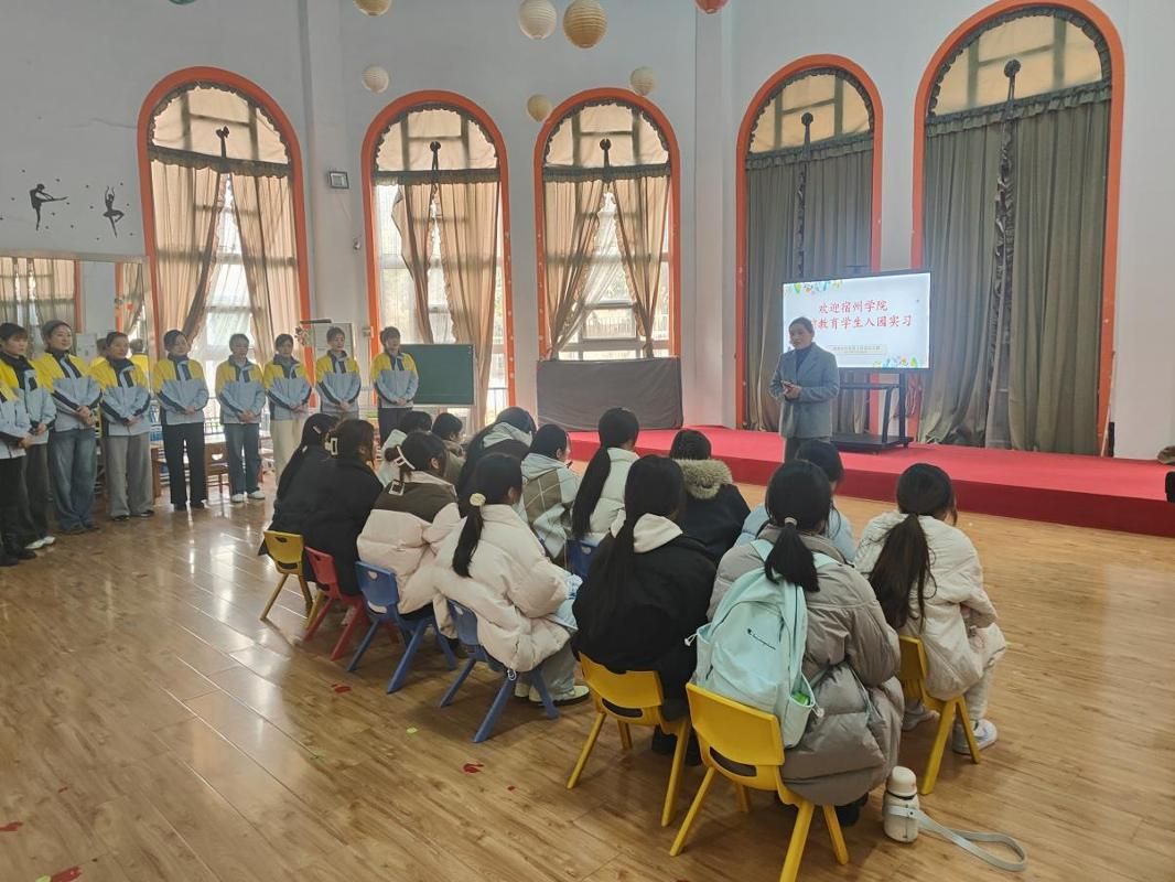 本次见习活动由6名专业教师带队,全体见习生分赴宿州市多所幼儿园,通过教育见习观摩幼儿园教育教学全过程,以达到在实践中感悟幼师使命,在观察中积累育人经验的见习目的。各幼儿园对见习生的到来表示热烈欢迎,园方负责人详细介绍了幼儿园的办园理念、课程特色、安全管理制度及一日活动流程,同时提出明确要求:希望见习生遵守幼儿园作息时间与行为规范,爱护园内设施设备;尊重幼儿个性差异与成长规律,以耐心、细心、爱心对待每一位孩子;主动融入班级集体,在实践中观察学习、积极思考,展现宿州学院学子的良好风貌。园方还为每位见习生配备了经验丰富的一线教师作为指导教师,全程跟进教学指导与实践帮扶。
