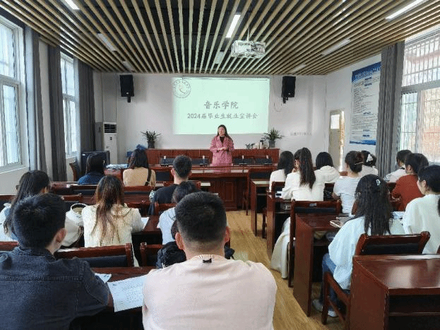 4月9日,音乐学院在一楼会议室召开2024届毕业生就业形势与政策宣讲会。音乐学院党委书记徐强,上派幼儿园园长周洋洋,及毕业生代表参加了会议。