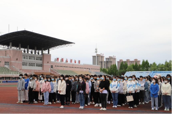 5月9日上午,音乐学院在学校田径场举行升旗仪式,音乐学院党委副书记,纪委书记李小娜,辅导员张海霞,莫梦娴及全体21级学生参加升旗仪式。