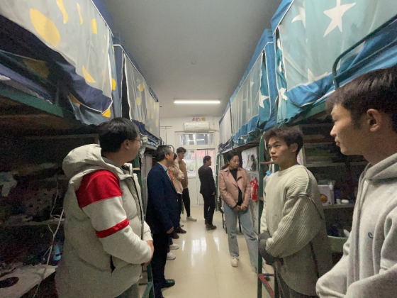 10月19日下午,音乐学院党委副书记(临时负责)徐强,音乐学院党委副书记,院长王善虎,音乐学院党委副书记,纪委书记李小娜及其各班辅导员对全院各个年级的宿舍的卫⽣状况、安全情况进⾏⼤检查。